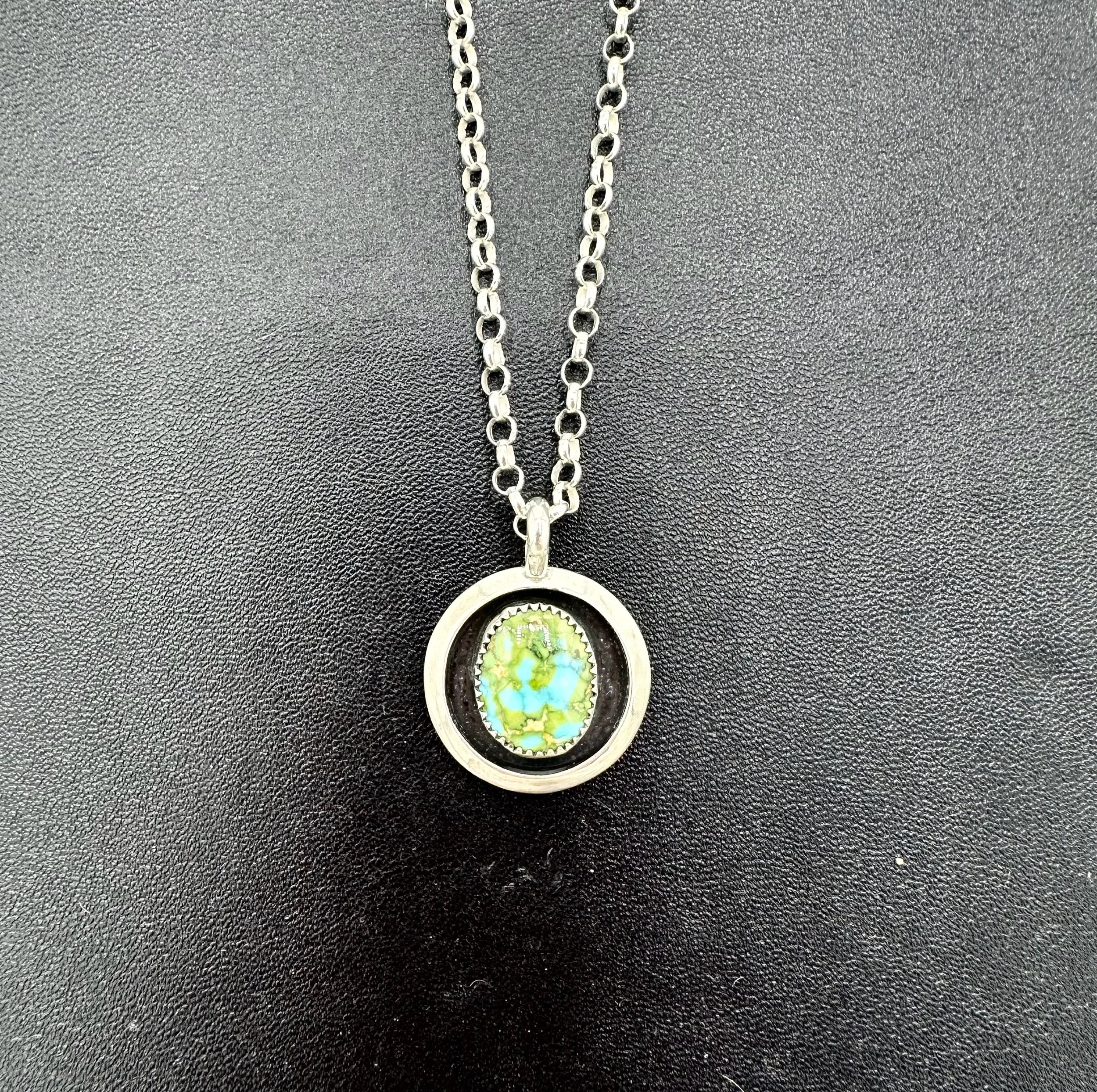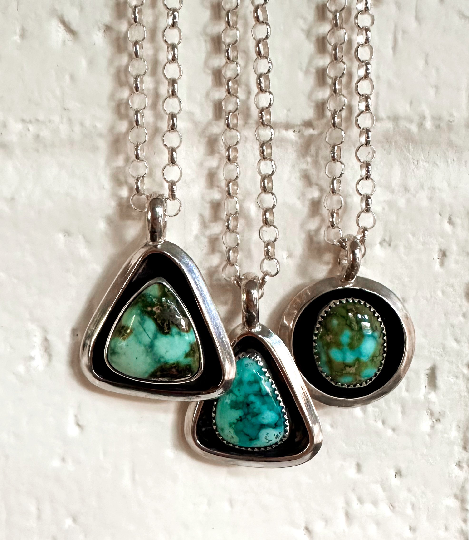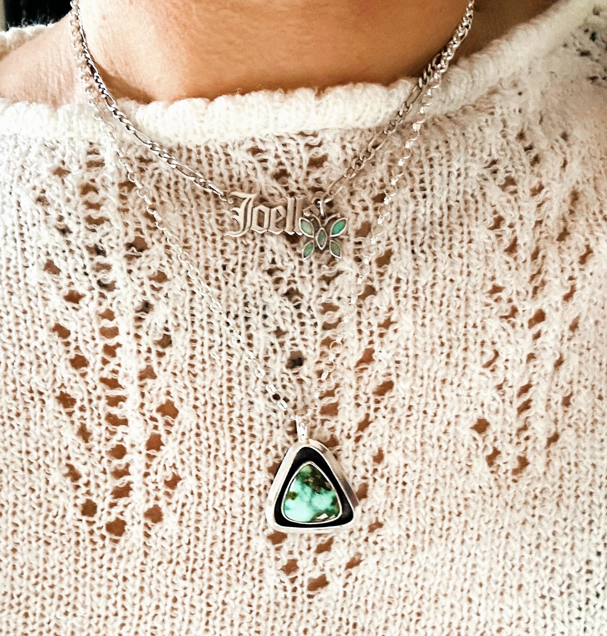 Sterling silver shadow box necklace with high grade White Water Turquoise.